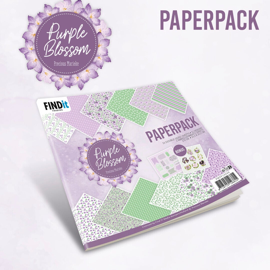 Boekje met 18 vellen dubbelzijdig designpapier in 12 designs, passend bij de collectie Purple Blossom van Precious Marieke. Formaat per pagina 20,3 x 20,3 cm.