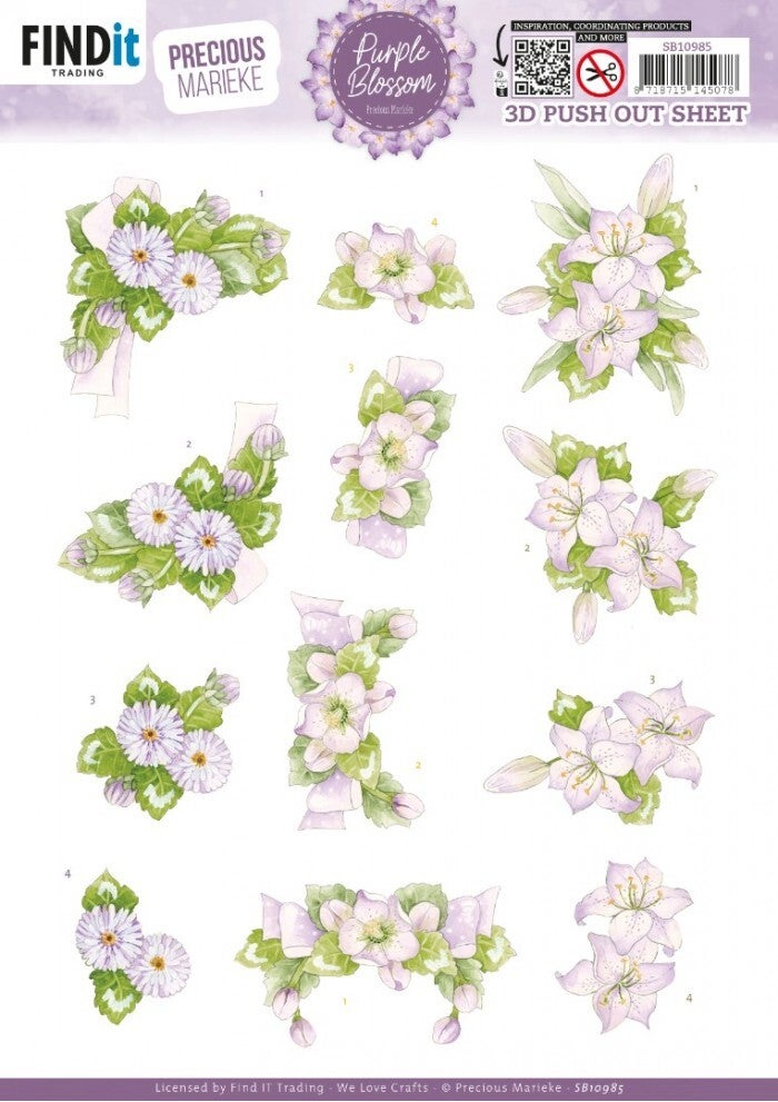 Uitdrukvel/Stansvel met drie 3D-afbeeldingen in het thema van de collectie Purple Blossom van Precious Marieke.