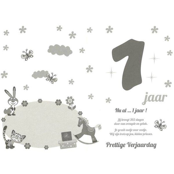 Dubbele kaart met gekleurde envelop en holografische druk, binnenzijde geïllustreerd en voorzien van verjaardagswens.