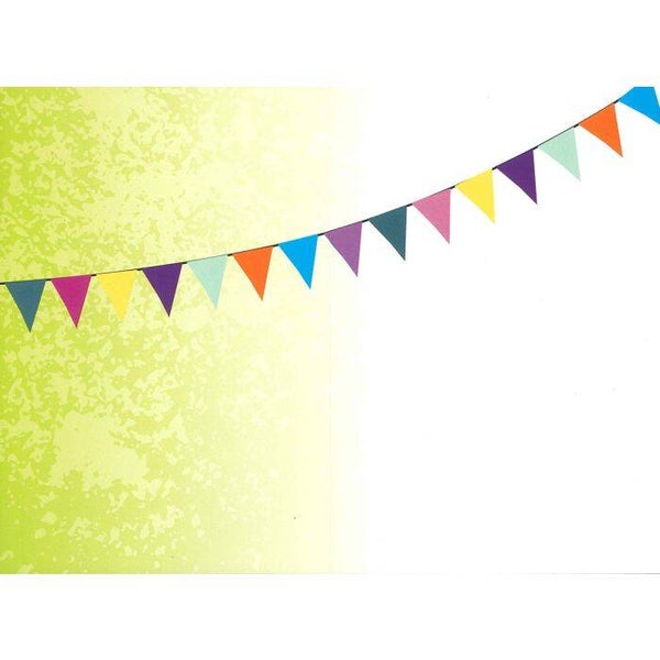 Dubbele kaart met gekleurde envelop, binnenzijde geïllustreerd.