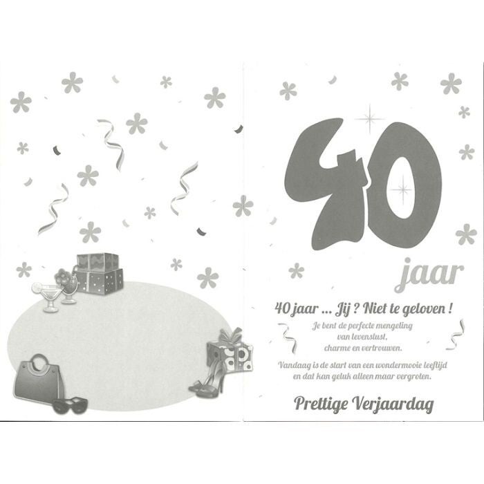 Dubbele kaart met gekleurde envelop en holografische druk, binnenzijde geïllustreerd en voorzien van verjaardagswens.
