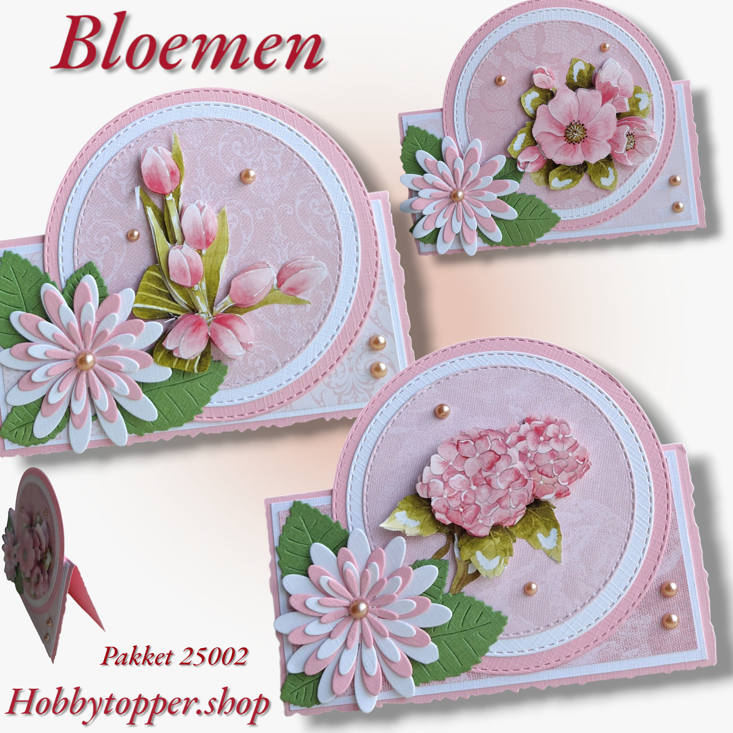 Kaartenpakket voor de 3 afgebeelde kaarten, incl 3D knipvel, stansjes, kaartkarton, enveloppen, enz.